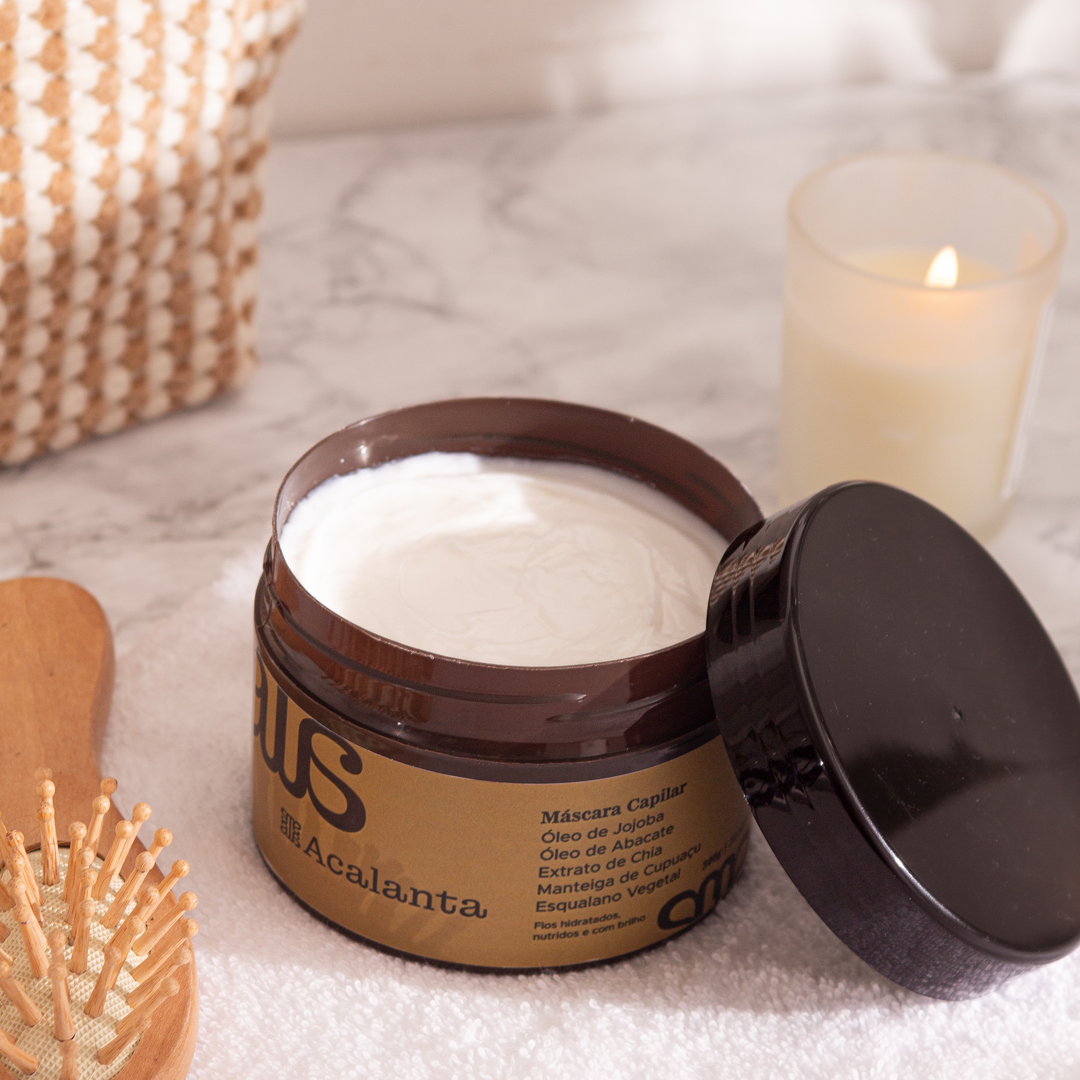 Com uma combinação poderosa de óleo de jojoba, óleo de abacate, manteiga de cupuaçu , a Máscara acalanta age diretamente nos fios ressecados e porosos , promovendo: